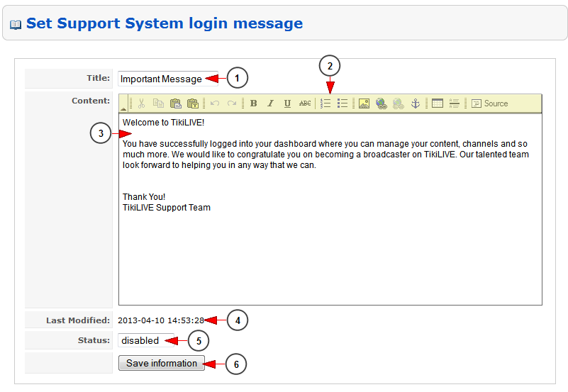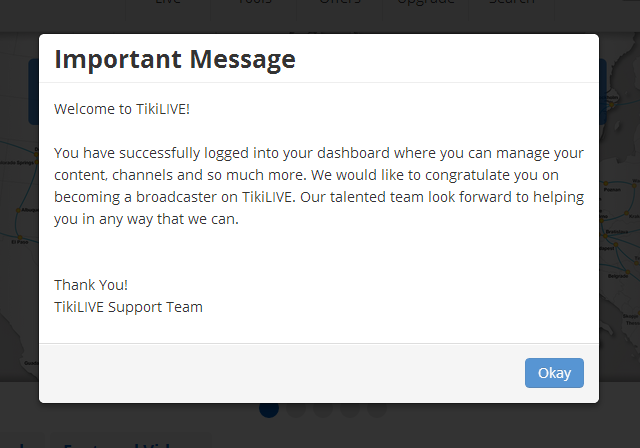 Note: The notification appears on the website, after the user logs in. Each message appears only once.